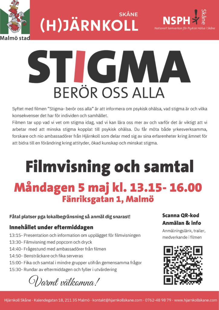 Filmen tar upp vad vi vet om stigma idag, vad vi kan lära oss mer av och varför det är viktigt att vi arbetar med att minska stigma kopplat till psykisk ohälsa. Du får möta både yrkesverksamma, forskare och nio ambassadörer från Hjärnkoll som delar med sig av sina erfarenheter kring ämnet för att bidra till en förändring kring attityder, ökad kunskap och minskat stigma.
